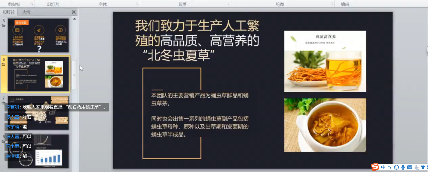 此次路演分别有“盐碱兰州百合”、“薪能源—生物质能源利用”、“蛹虫草提质增效关键技术”、“猴头菇菌丝粉”等13个项目的选手参加了路演,选手们通过钉钉直播平台依次进行3分钟的项目PPT介绍,围绕市场前景、团队架构、产品服务、商业模式、发展前景等方面进行了项目展示。视频连线的指导老师对路演项目进行深入的点评,从项目创新性、科技性、产品推广、盈利模式等多个方面与参赛选手进行探讨与交流,并就当前项目存在的问题提出意见建议。同学们表示,老师们中肯的点评和耐心的指导给予团队很大的鼓舞和信心。
