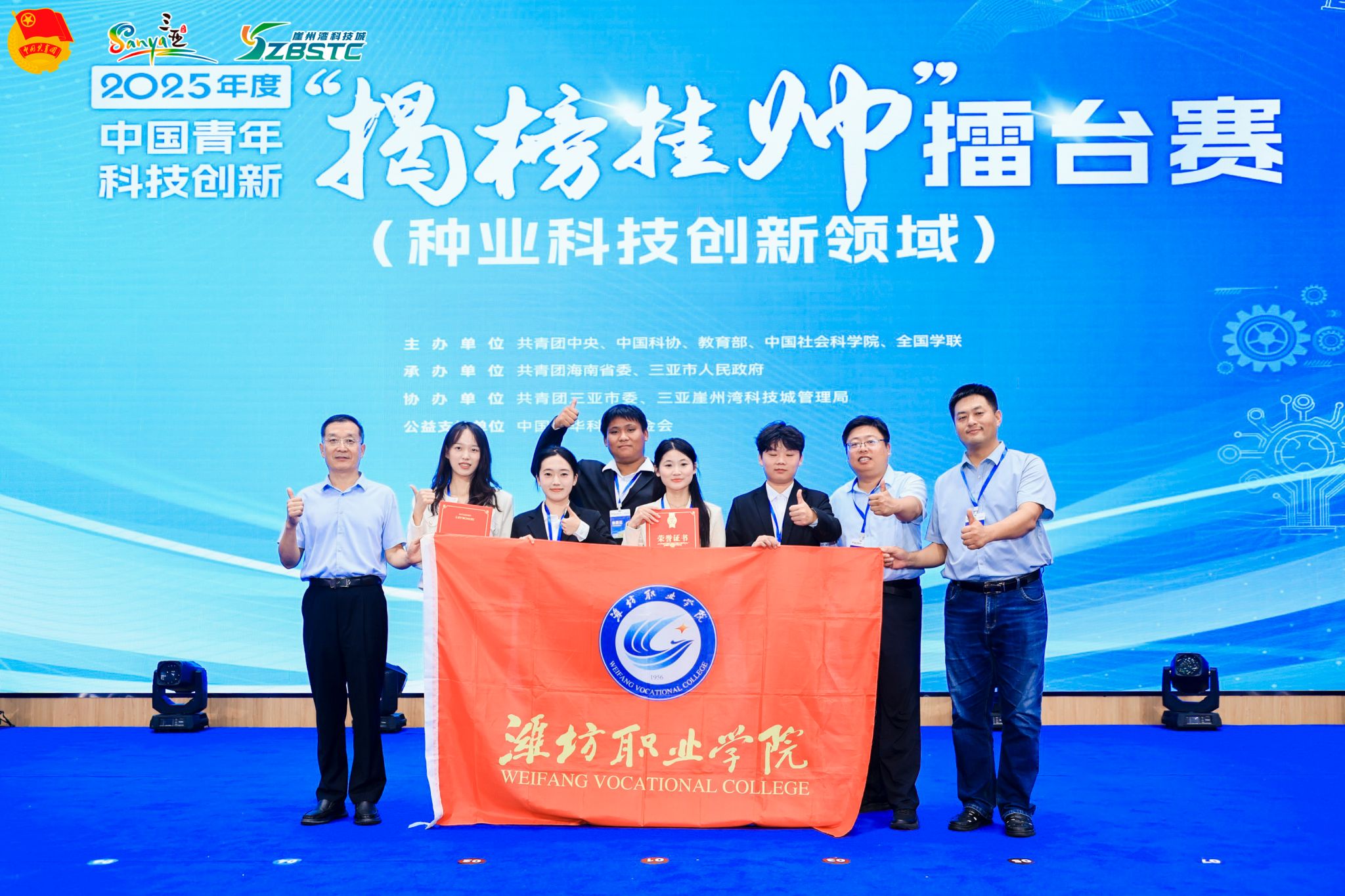 佳绩的背后,是师生团队近两年的深耕与坚守。备赛期间,师生团队深入实验室、试验田,反复优化方案、验证数据,每一个环节都凝聚着团队的智慧与汗水。学院团委召开推进会议,调度部署大赛工作,先后多次邀请学院领导、竞赛专家等对参赛项目进行指导,对参赛项目材料百余次修改、优化提升。比赛期间,员工团队沉着应战、敢打敢拼,以其显著的创新性和应用潜力赢得评委高度认可,充分展现了“崇实尚行 敢于争先”的潍职精神。