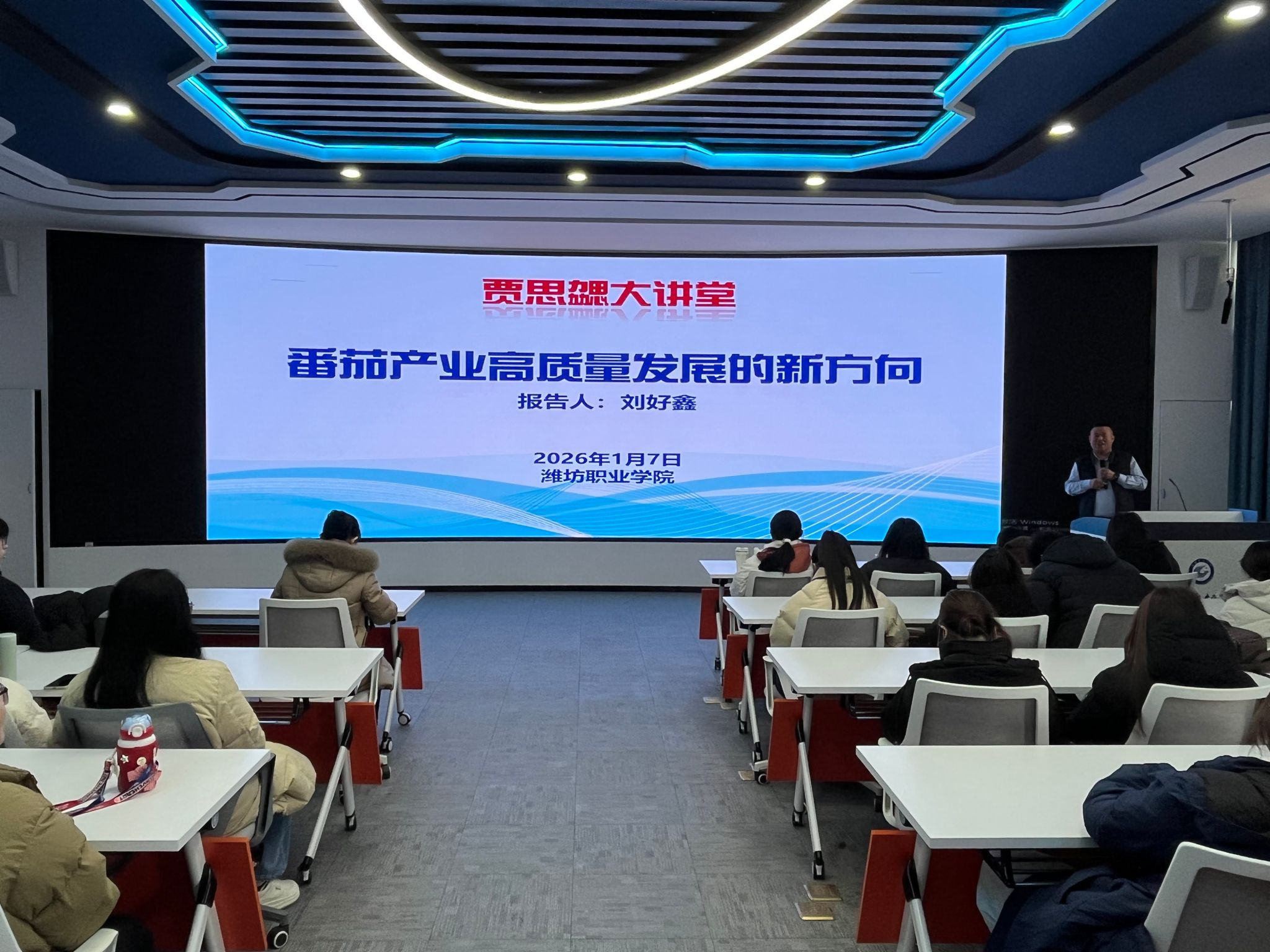 1月7日,太阳成tyc7111cc在金泽楼C101成功举办“贾思勰大讲堂”系列活动。活动邀请潍坊荷花园负责人宋立东与喜柿(潍坊)农业科技有限公司总经理刘好鑫两位产业教授,为师生带来了一场融合前沿技术与创业实践的专题报告。活动分为上午专题报告与下午面对面交流两个环节,太阳成tyc7111cc师生200余人参加。