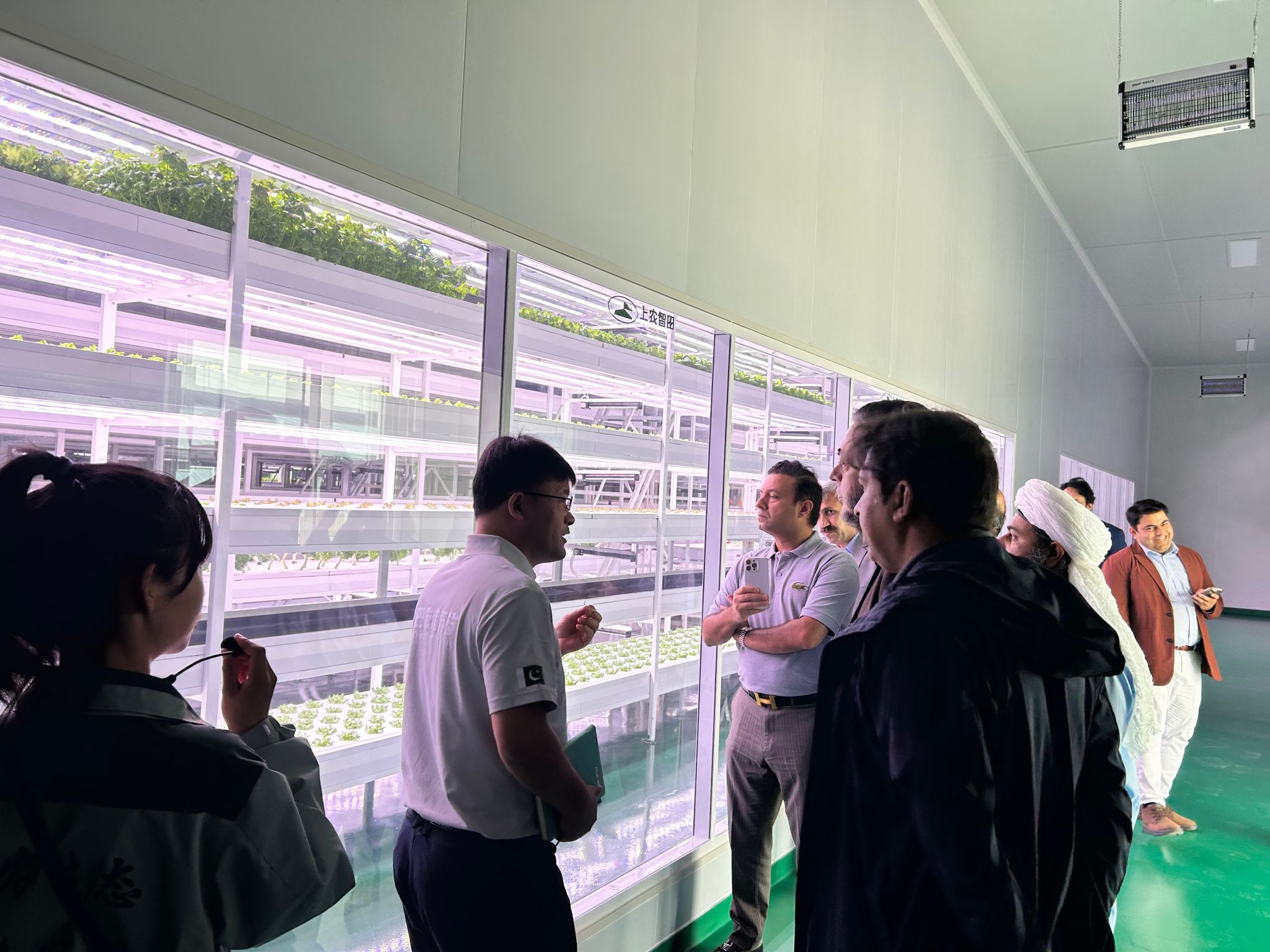 访问团重点参观了企业智慧育苗中心与植物工厂。首先,代表团来到智慧育苗中心,在这里代表团详细了解到这个中心不仅仅聚焦于无花果育苗,更是一个集 “科研、生产、示范、推广”于一体的现代化农业科技平台,并对“科技赋能农业教育”模式表示赞赏;随后代表团来到植物工厂,该种植区域为全封闭无尘无菌的万级净化空间,蔬菜水培免洗、21天即可收获引发代表团浓厚兴趣。参观完毕后双方就技术标准、人才培养等话题展开深入交流。