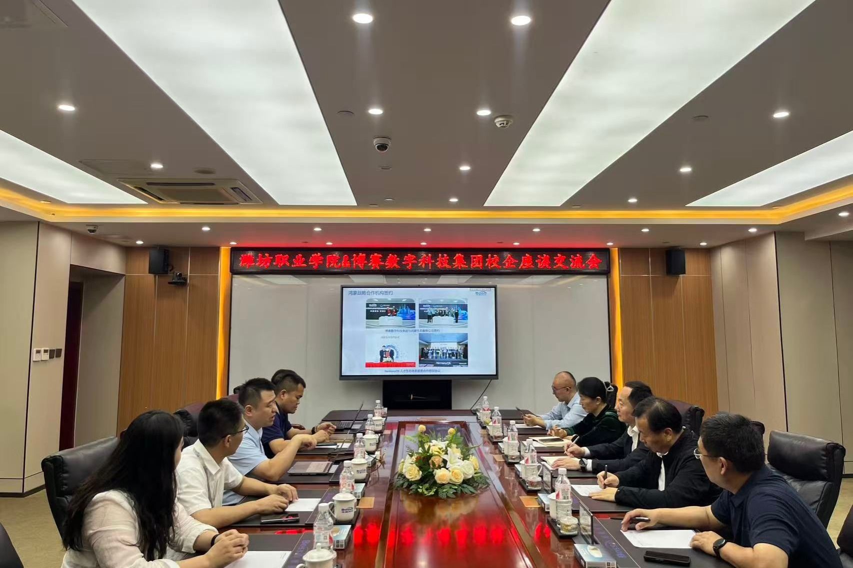 在博赛数字科技集团有限公司,董事长董良回顾了双方合作历程以及取得的育人成效,介绍了集团的发展历程、多元业态布局及未来发展规划,期待与公司加强校企合作,聚焦华为鸿蒙、数据标注等信息产业人才培养,推动产学研协同创新。
